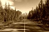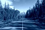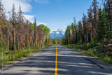 Highway 93A in Jasper National Park, Alberta, Canada. Canadian Rockies summer landscape. Brussels Peak in the background.