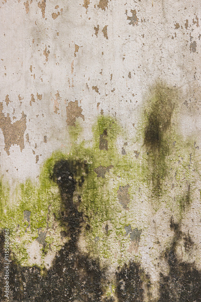 Grungy weathered concrete wall with cracks and stains, exuding a raw, aged texture background