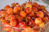Two kinds of cherries in the glass bowls
