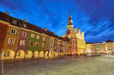 Old Market Square in Poznan at night, long exposure effect, Poland.