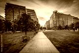 Walkway and buildings at McPherson Square, in Washington, DC.