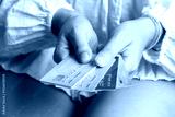 Woman holding credit cards and he is choosing a credit card to pay and spend Payment for goods via credit card. Finance and banking concept