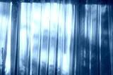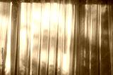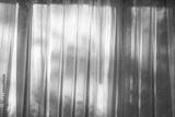 Soft light on curtains window. There was morning light through the window in room, looking at the view of the mountains and trees as the sun rose.