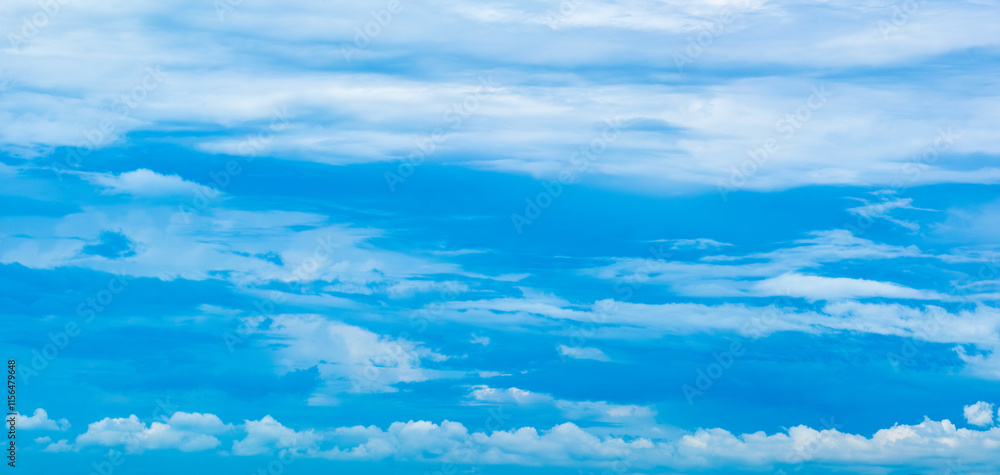 Panorama of cloud clear sky background for summer vacation concept at ocean and summer sea water with sunlight of beautiful cloudy