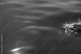 A sleek dolphin glides just beneath the ocean's calm, blue surface, creating gentle ripples and a splash. Sunlight reflects softly on the water,