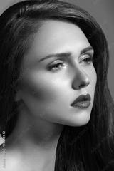 Beautiful ginger young woman with luxury hair style and fashion gloss makeup. Beauty portrait of sexy model with red hair. Long soft shiny hairstyle. Close-up studio shot of look redhead girl