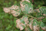 rosaio malato. Foglie di Rosa secche e danneggiate