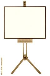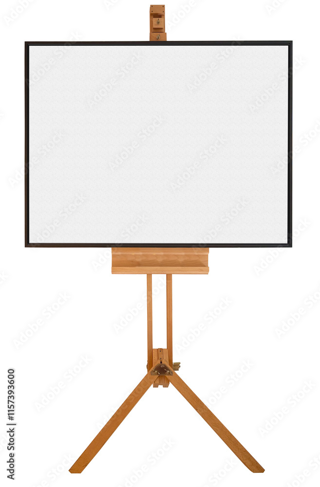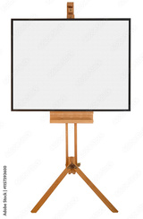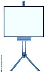 Tableau blanc avec bordure noire sur chevalet, fond blanc