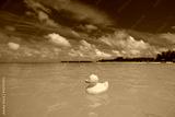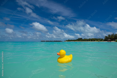 Yellow duck on the tropical beach. Concept travel and vacation