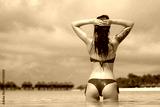 Beautiful woman's body in sexy bikini over beach background