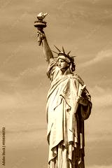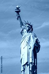 Statue of Liberty against blue sky background in New York City. Lady with the torch