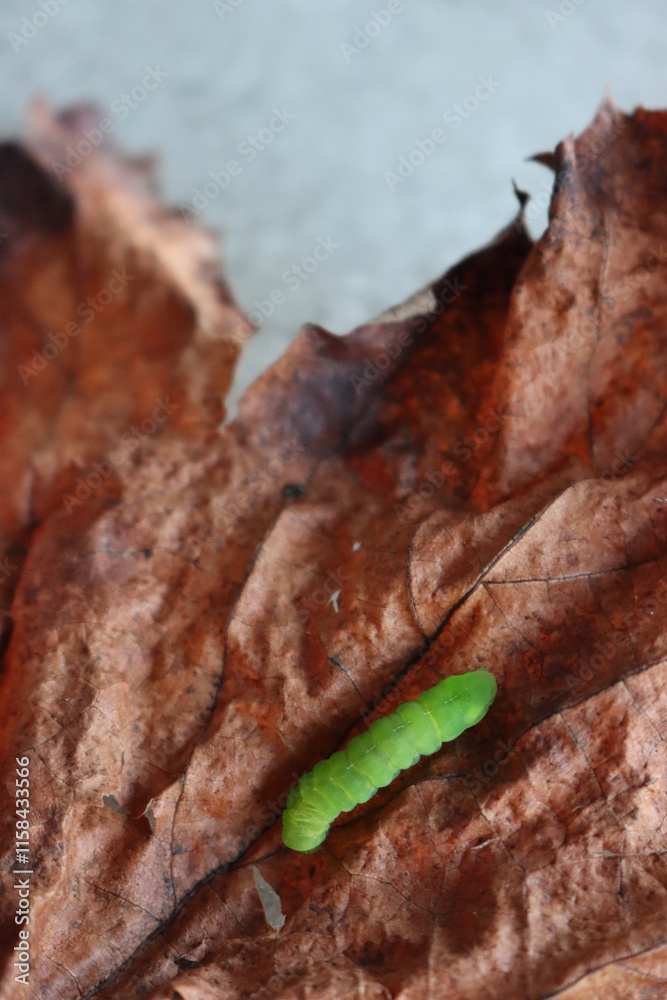 Aporophyla ( Phylapora) lutulenta. Noctuidae. Little green worm ina dry brown leaf