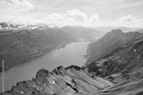 Breathtaking panoramic view of Lake Brienz, surrounded by lush mountains and snow-capped peaks in Switzerland. Perfect for nature lovers and adventure seekers.