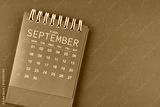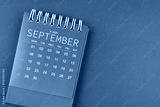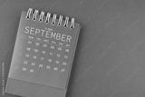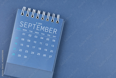September 2025 calendar on blue color background. Desk calendar for planning.