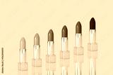 set Luxurious golden lipsticks scattered on light background, elegance and beauty in cosmetics, Beauty industry glamour, 3d render