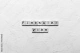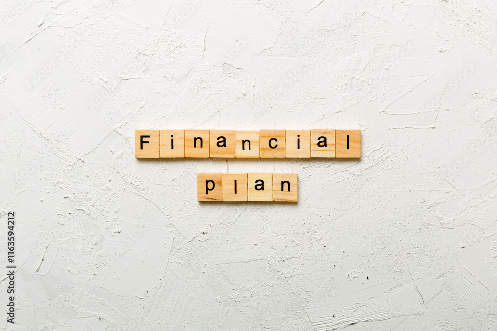 financial plan word written on wood block. financial plan text on cement table for your desing, concept