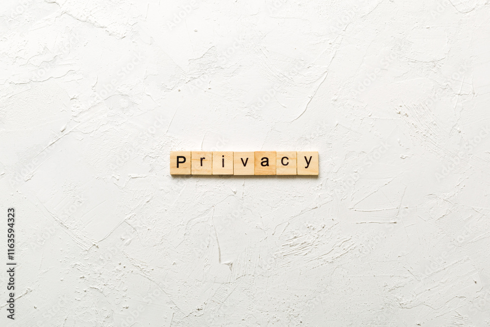 privacy word written on wood block. privacy text on table, concept