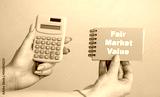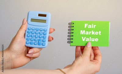 Fair Market Value concept. Price an asset would sell for on the open market when certain conditions are met. Business and finance. Calculator and notebook in hands