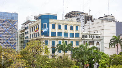 View of the city of Guayaquil from the Malecon 2000 promenade, Ecuador.