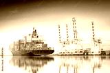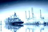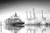 Logistics and transportation of International Container Cargo ship in a harbor with water reflections for logistic import export background and transport industry.