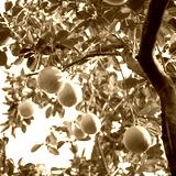 Large branch of mature grapefruit tree load of ripe pomelos under clear blue sky ready to harvest in Hanoi, hanging Dien citrus heirloom grapefruit fruits branch at homegrown backyard garden