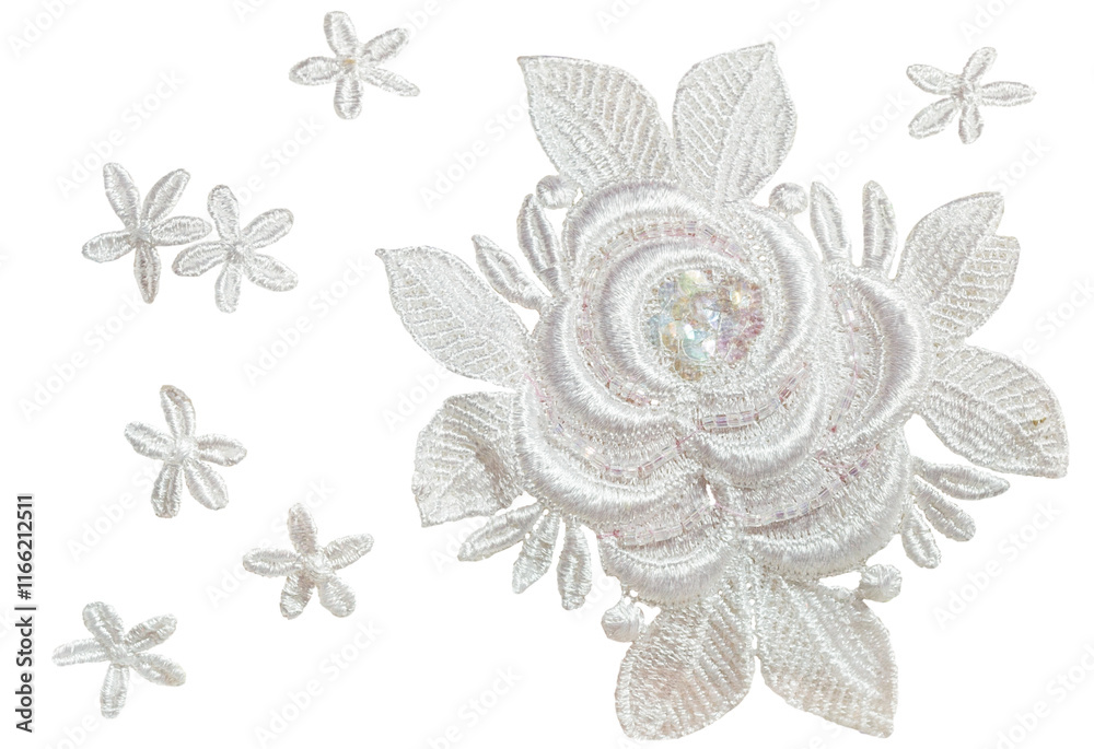 Embroidered flowers - Close up of embroidered flowers and leaves on bridal fabric