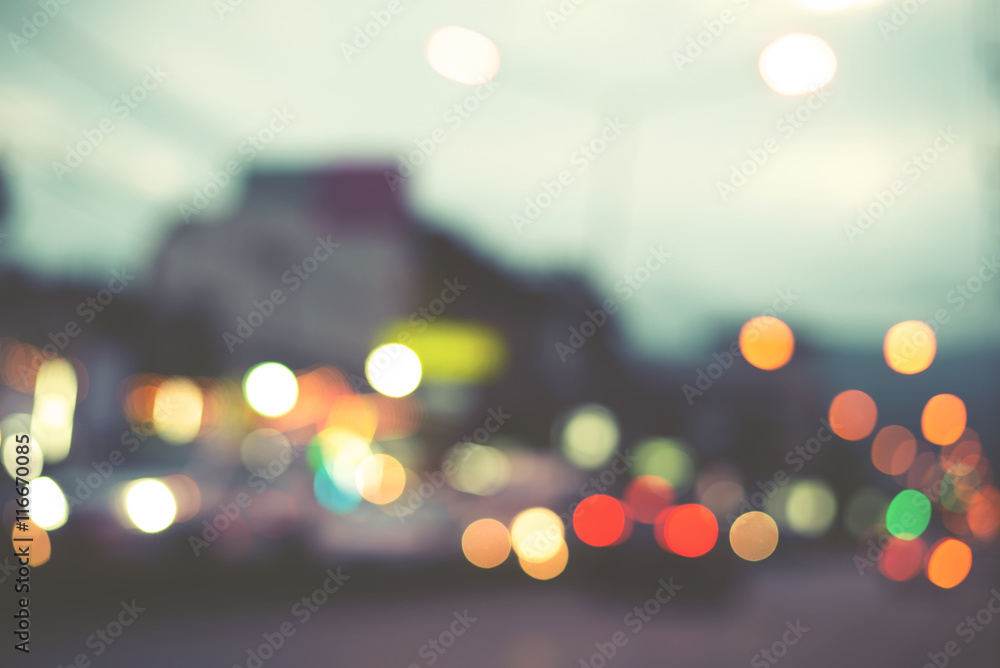 Artistic style - Defocused urban abstract blurred bokeh lights. City blurring light in the background for your design, vintage or retro color tone style.