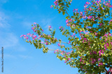 Purple Bauhinia flower blooming on blue sky background (Bauhinia purpurea linn tree)