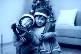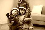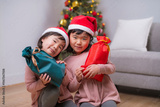 サンタ帽をかぶった姉妹とクリスマスギフト
