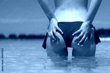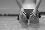 Close up girl back in bikini against ocean beach