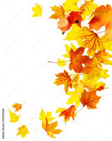 Autumn falling maple leaves isolated on white