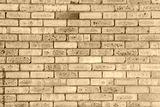 A close-up of an wall of a building with bricks. Construction material with yellow and brown bricks. Background or backdrop with brown and beige colors.