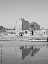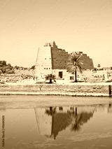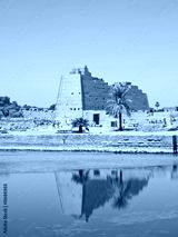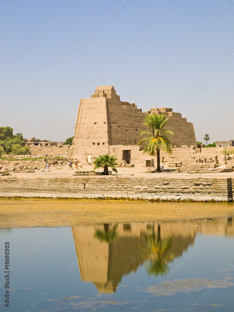 Pylon reflecting in the sacred lake at Karnak temple. Thebes