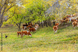 Cows grazing in meadow. Beautiful grassland pasture nature landscape in Inner Mongolia, China. Autumn landscape.