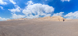 Desert sand ground and dune natural landscape in Xinjiang. Famous Dahaidao no man's land scenery in China. Outdoor natural background.