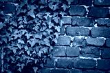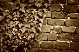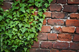 Green ivy leaves red bricks wall texture