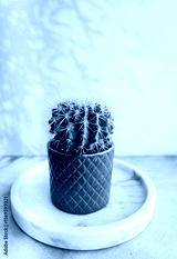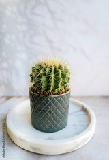 Green round succulent cactus in pot. Home Decoration plant
