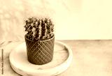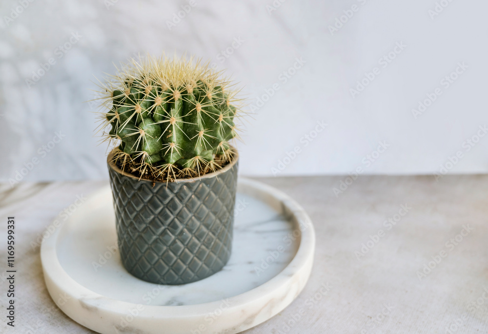 Green round succulent cactus in pot. Home Decoration plant