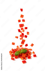 Falling Chopped paprika or red sweet pepper cuts isolated on white background