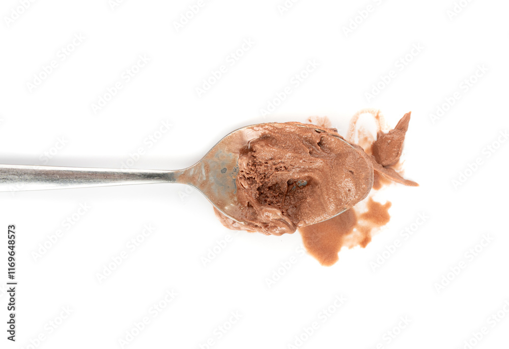 Melted chocolate ice cream isolated, real melting cocoa icecream drops, chocolate ice stain