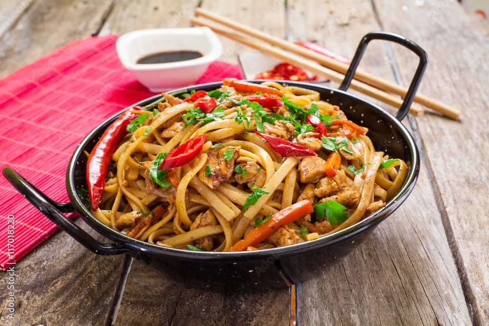 Chinese food on wok