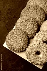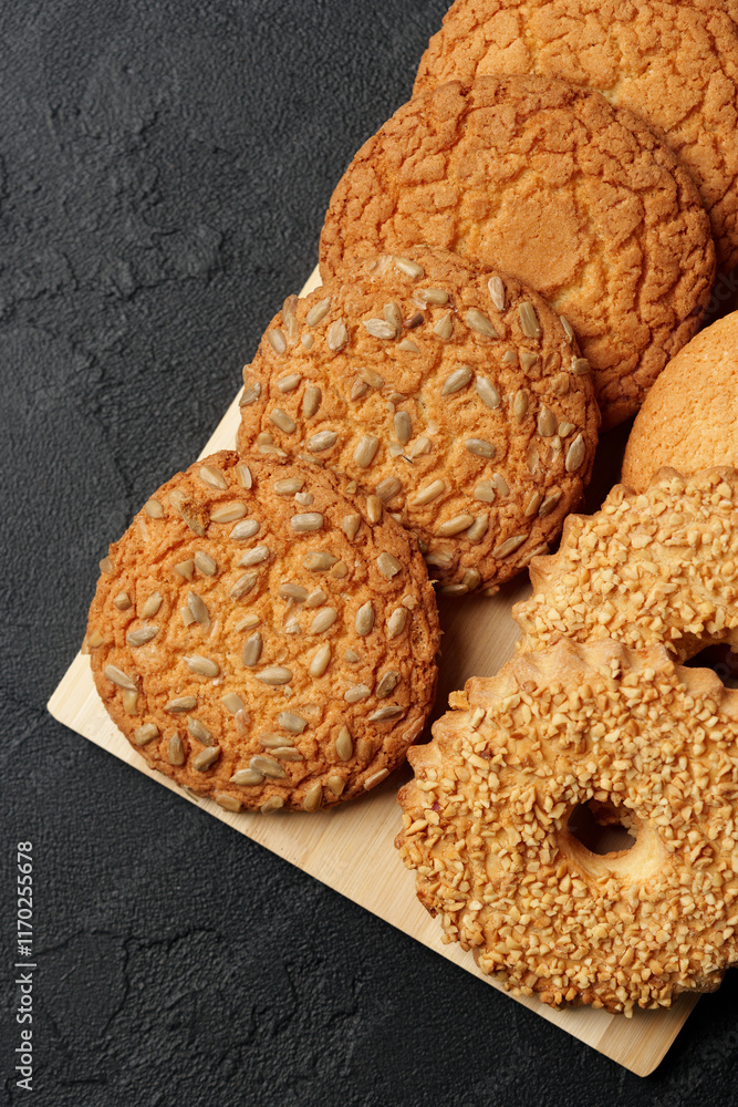 Delicious assortment of homemade cookies with unique textures and flavors on a wooden board
