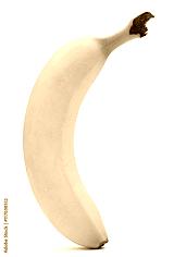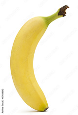 Single ripe banana isolated on white background.