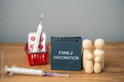 Family vaccination concept. Creating a protective barrier against preventable diseases while safeguarding vulnerable individuals like infants, pregnant women, and the elderly. Family figures, syringe