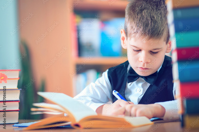 Kid Reading Book, Pupil Learn Lesson and Dream, Education