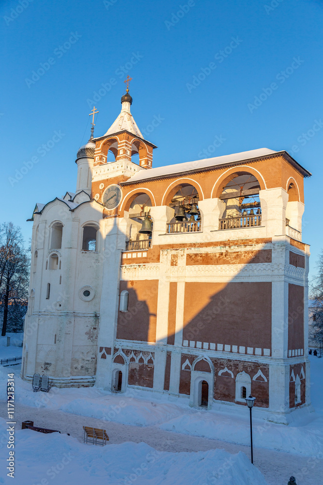 The bell tower on the territory of the Spaso-Evfimiev Monastery. Suzdal city, Vladimir region, Russia