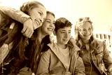 happy teenage students or friends outdoors