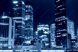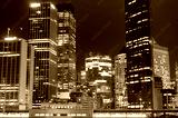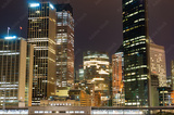 Modern cityscape at night background. Skyscrapers of Sydney downtown at dusk. Copy space, long exposure