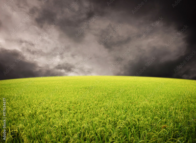 Rice field on storm