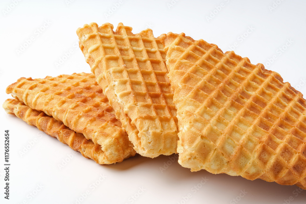 Waffles stacked neatly on a white surface showcasing their crispy texture and golden color